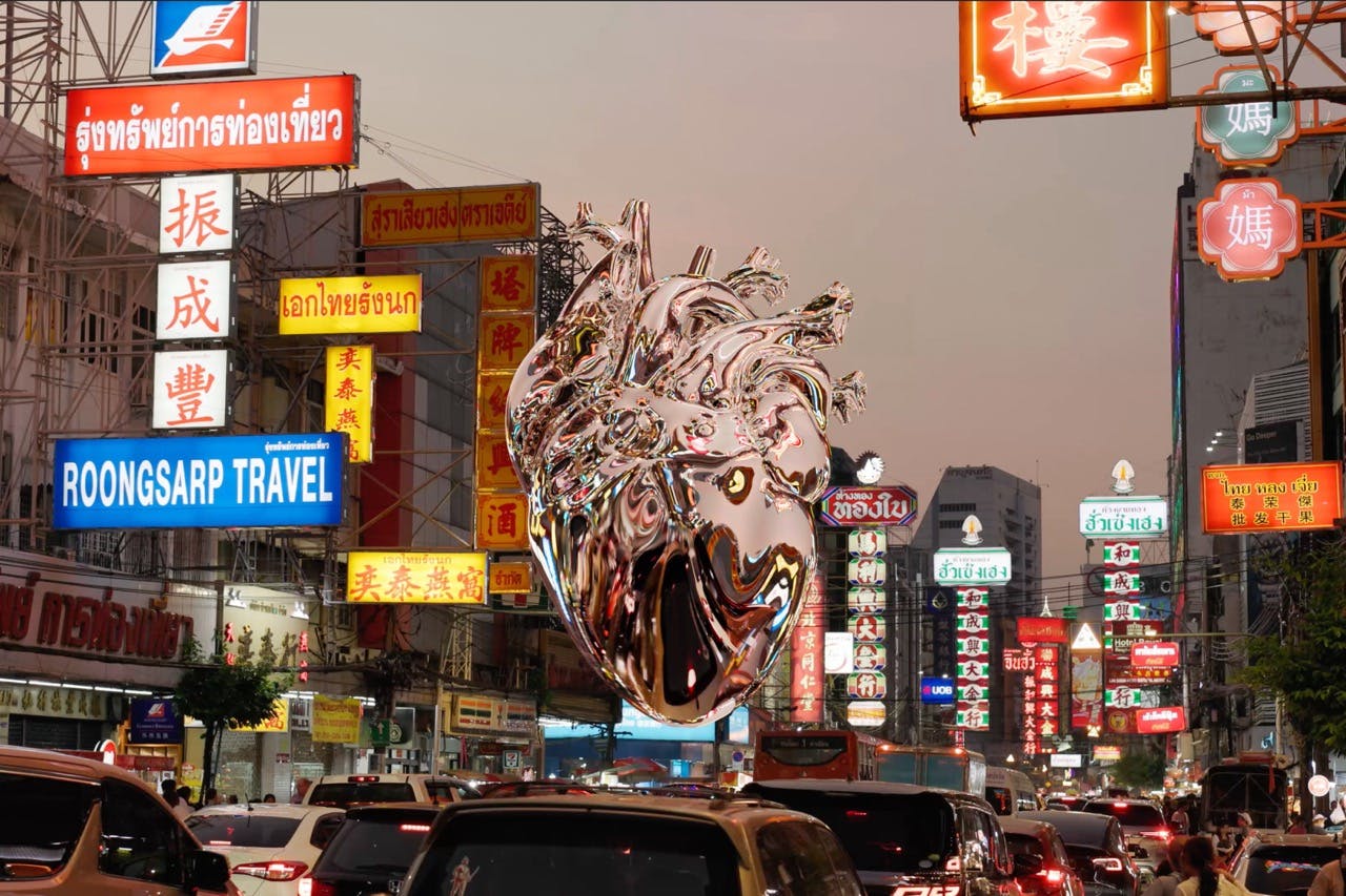 Set against famous landmarks, shifting landscapes, and bustling city streets, the floating chrome heart appeared as if it belonged there. Each placement was carefully integrated into its environment, with reflections, lighting, and movement designed to make the illusion seamless. The final montage, set to an instrumental version of Some Type of Skin, turned the visual into an extension of the album’s world, deepening its emotional pull.
